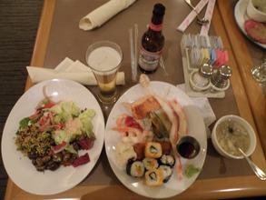 リビエラのバフェで食べたメニュー (ローストビーフが分厚い!) |