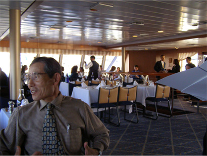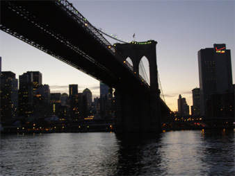 ジョン・F・ケネディ空港はかつて2回経験があるが、さすがに広すぎて空港の中は記憶にないが、空港からマンハッタンまではかつて通ったのと同じ道だったので、見える風景も記憶に残っているものがたくさんあった。途中に見える奇妙な形をした塔(Flushing Meadows-Corona Park にある塔;USオープンが行われるテニスコートの近く)も相変わらずある。それにしても、ニューヨークは今回で3回目となるが、目の前に迫ってくるエンパイアーステートビルを始めとしたマンハッタンのビル群が近づいてくると、やはりわくわくしてくる。ボストンのおっさんやナイアガラのおばちゃんにニューヨークはダメだと言ってしまったが、やはりそうは言ってもニューヨークというところはやはり人を引き付ける場所である。過去2回は、マンハッタンに入るのにクイーンズボーロー橋を通って入ったが、今回はウィリアムバーグ橋を通って入った。橋の横には高級アパートがあるが、そこにはニューヨークヤンキースの松井選手が住んでいるとのことである。マンハッタンに入った後は中華街を通って南下し、サウスストリート・シーポートでバスを止め、昼食になった。サウスストリート・シーポートというのは、マンハッタンの南のイーストリバー側にある、帆船を展示している会場で、過去2回のニューヨークでもこの場所には気がついてたが、ここで昼食を取ることになるとは思いもしなかった。昼食は、サウスストリートシーポートにあるショッピングセンターの中のフードコートで取った。フードコートには、アメリカン、イタリアン、中華、和食など様々な国のファストフードがあり、それを各自セルフサービスで買って、テーブルに持って行き食べるというものである。ここでは中華の焼きそばを食べようとしたが、あいにく現金がほとんどなく、トラベラーズチェックを使わなければならない状況になってしまった。そして店の人にトラベラーズチェックを使えるかと聞いたところ使えるとのことであったが、それが100ドルであるとわかったところで、拒否された。アメリカでは100ドル札を使うときに不正を嫌がられて拒否されることがあると旅行ガイドに書いてあったが、今回トラベラーズチェックではあったものの、そういうことが実際にあることがわかった。しょうがないから、このツアーで最初に行きの飛行機の中で知り合ったNさんに私の母の分も含めて20ドルを借りて、焼きそばを買った。このNさんには、このツアーを通じて本当にたびたびお世話になった。ここで食べた焼きそばは、こんなファストフードだから当然安いもの(そしてボリュームがある)であるが、なんだか久しぶりにうまいものを食べたように感じた。今までアメリカン料理ばかりで飽き飽きしていたところに、この焼きそばの味はすごく新鮮だった。その後フードコートの裏のバルコニーへ行くと、目の前いっぱいにブルックリン橋が広がっていた。ニューヨークにはマンハッタンと外をつなぐ吊橋がいつくもあるが、そのなかでもレンガ造りで伝統を感じさせるブルックリン橋は一番有名であるが、やはり本当に素晴らしいと思った。